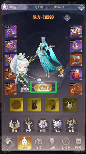 4、点击一键穿戴为角色穿戴装备,提升战斗力。