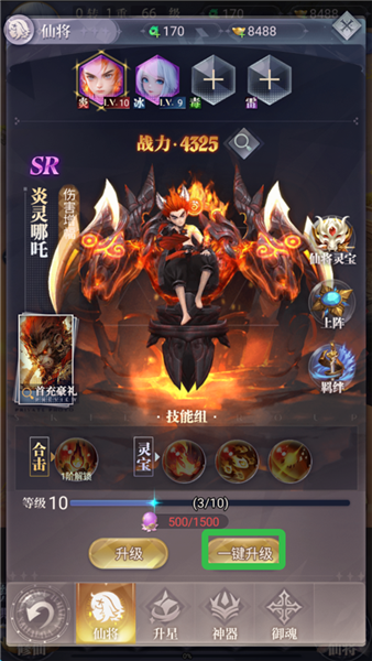 5、在仙将界面为仙将升级。