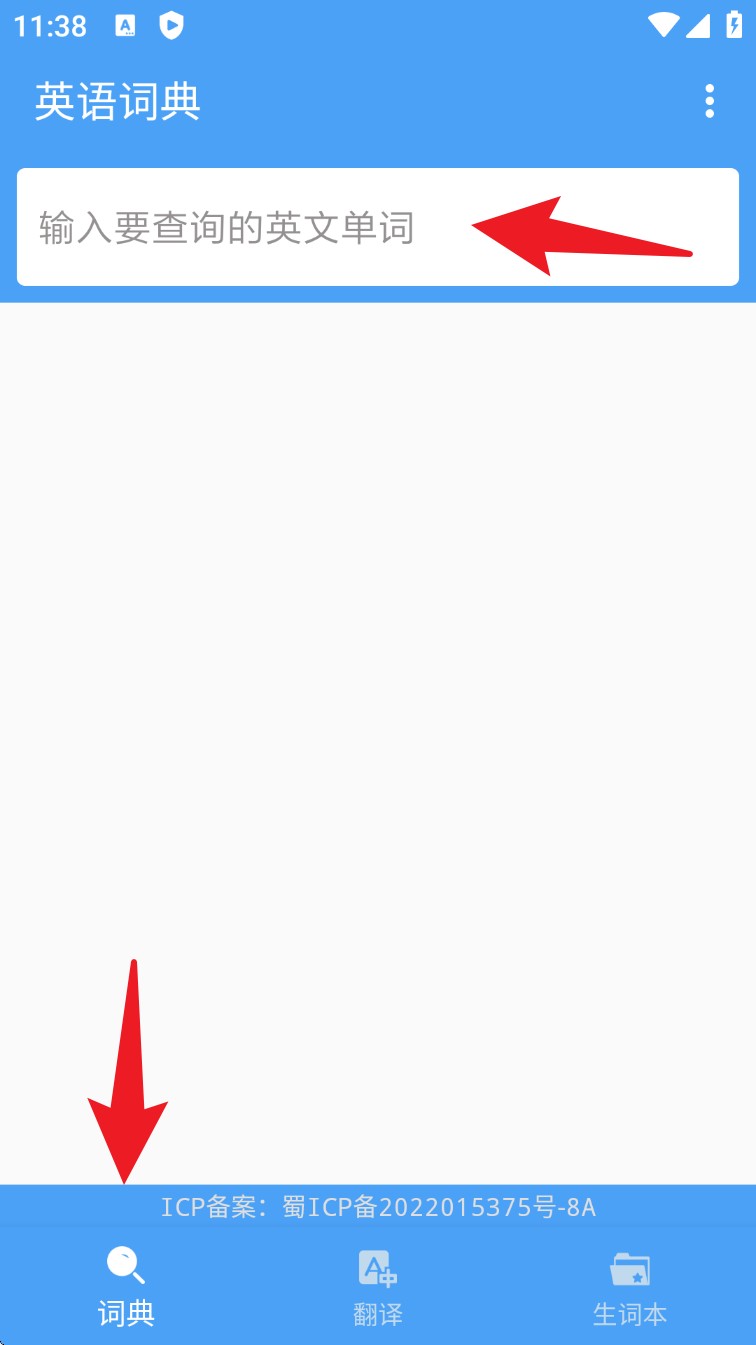 1. 在首页词典页面点击输入框,输入你要查询的英文单词进行搜索。