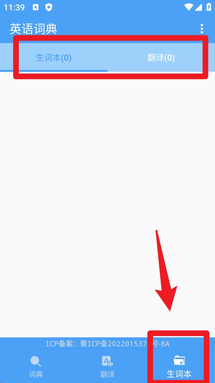 4. 点击底部的生词本标签,可查看你收藏过的单词和翻译内容,支持分类管理。