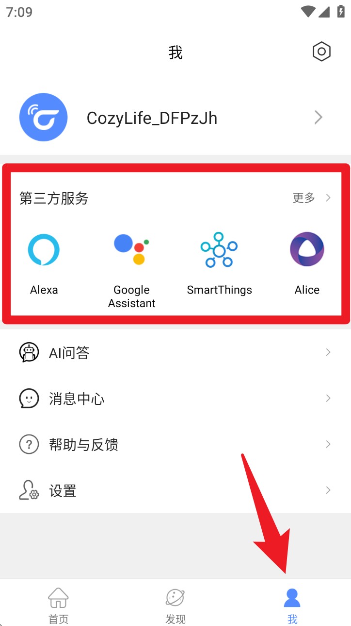 5. 切换到我页面,可绑定 Alexa、Google Assistant 等第三方服务,实现跨平台联动控制。