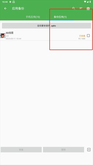 3、完成上述操作后备份即成功,在此处可查看已备份的应用列表。