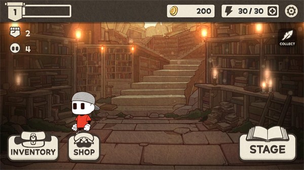 6、在主界面点击inventory可以装备不同的帽子来使用独特的能力,也可以对你的装备进行升级。