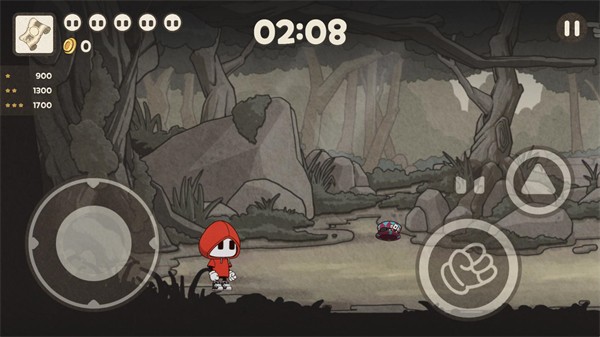 3、正式开始后左边控制角色的移动,右边是跳跃,攻击和技能按键。