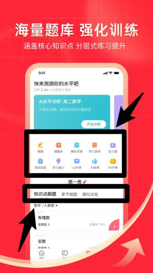 2、智能习题推送系统:根据学习轨迹与错题数据,精准推荐练习内容。