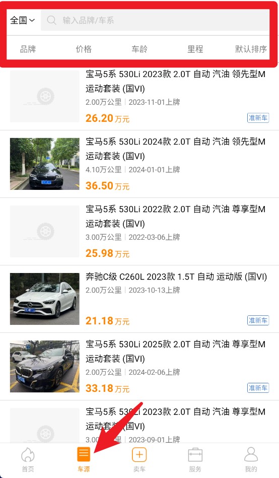 4、车辆检索:输入具体车型条件,快速筛选匹配车源信息。