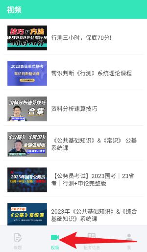 3、点击视频栏目可观看各类系统课程,涵盖行测、常识判断与资料分析等内容,提升备考效率。