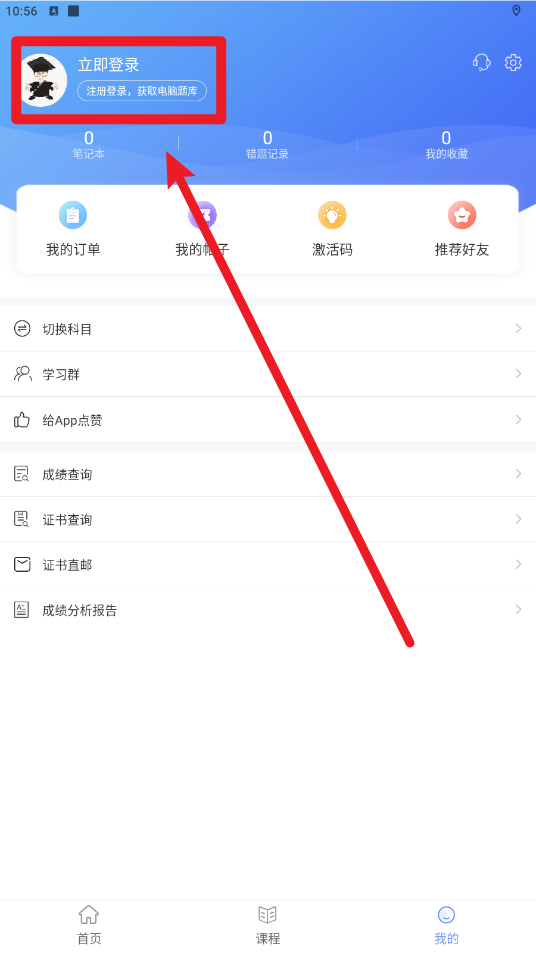 2、在个人信息页面中,点击左侧上方的 “立刻登录” 按键,触发登录流程;