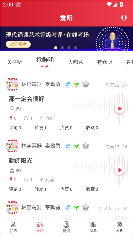 5、诵读情缘:借助方音诵读功能,为用户促成一段段特殊的诵读情缘。