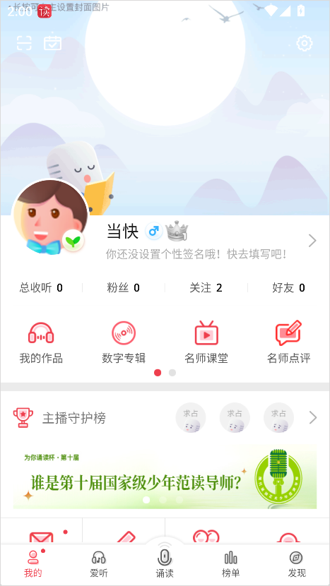 2、丰富诵读内容:推送多种诵读内容,分类齐全且随时更新,在首页直观展示;