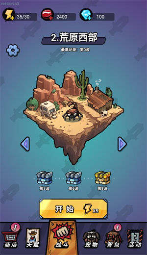 3.放好武器后点击开始开战就可以进行闯关,角色会自动使用武器来攻击敌人,消灭敌人可以获得经验。