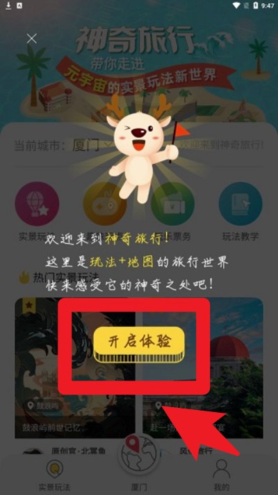 1. 首次进入App后会出现欢迎页面,点击中间的开启体验按钮,即可进入奇幻玩法探索模式。