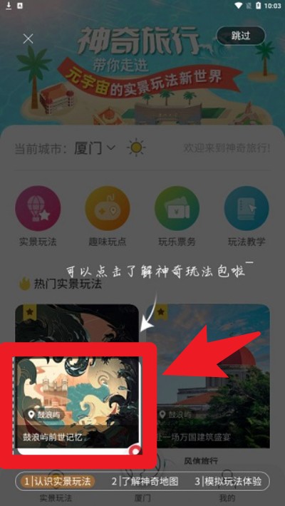 2. 在首页中选择实景玩法项目,点击任意推荐图即可进入该玩法包详情页。