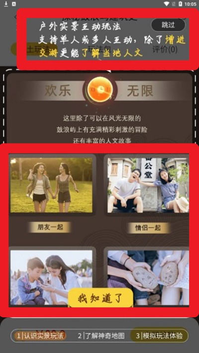 5. 最后引导界面将展示玩法的互动价值与推荐场景,说明可单人或多人进行探索,适合朋友或情侣一起参与。