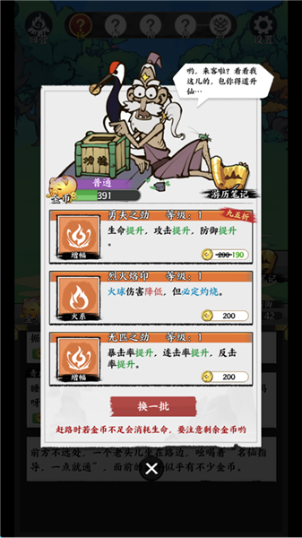 3、赢得战斗后,玩家可在三个技能中供选择其一。