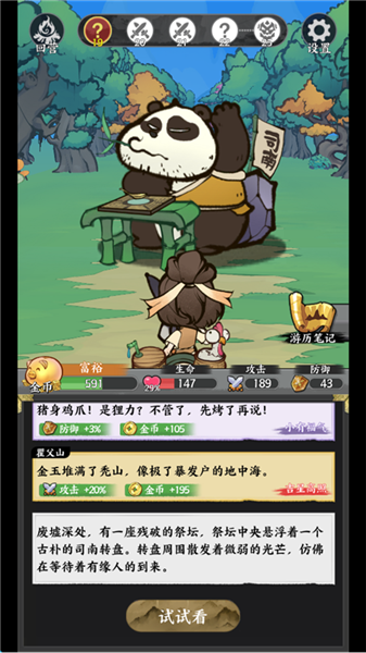 告别枯燥点击!你的每一个选择都可能触发意想不到的剧情 —— 是跟着神秘脚印探寻神兽踪迹,还是谨慎绕开?是鼓起勇气尝一口神农递来的 “仙草”,还是礼貌谢绝?用你的现代智慧在山海世界闯出专属天地!