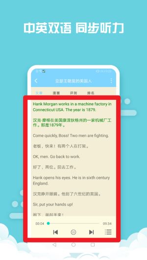 3、中英文双语对照展示原文内容,并支持同步播放朗读音频,提升阅读和听力能力。