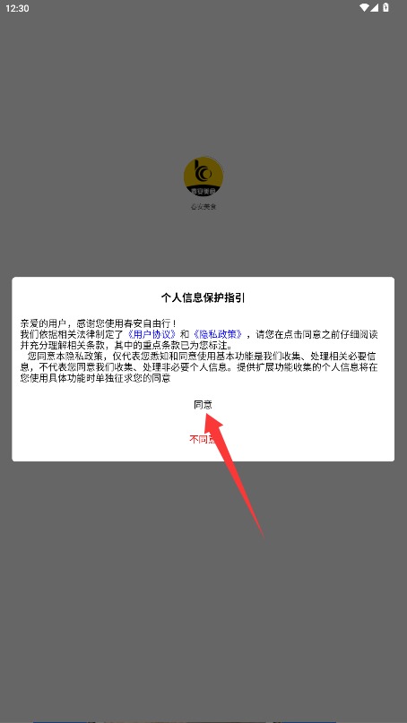 1、初次使用需阅读平台服务条款与隐私政策,确认后点击同意按钮进入应用。