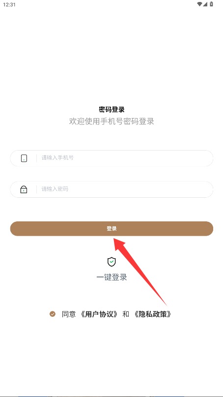 2、在登录界面输入手机号和密码,勾选同意协议条款后点击登录按钮进入应用。