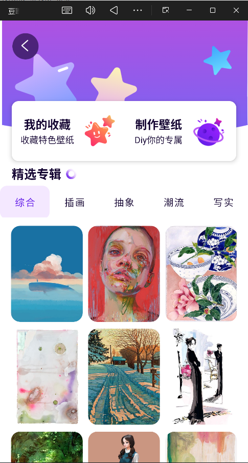 综合、插画、抽象、潮流、写实等分类。