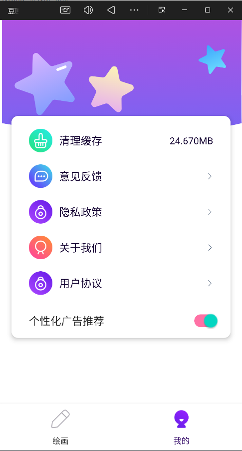 清理缓存:一键清理应用缓存(如 24.67MB)。