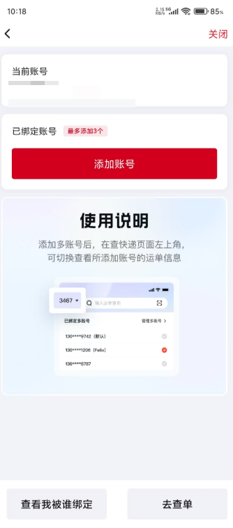 4.可以绑定3位亲朋好友的账户,灵活切换查看不同账户的订单。