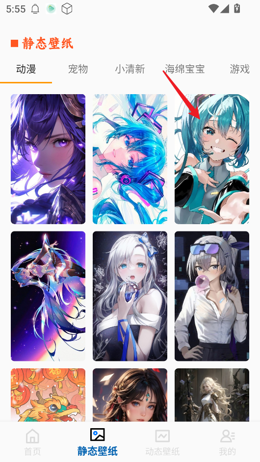 2、在分类中找到喜欢的图片并点击,进入详情页面即可预览壁纸应用效果,判断是否符合需求。