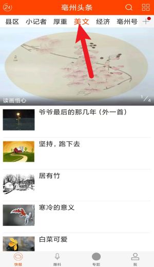 3、点击美文栏目,即可浏览精选文学美文与情感故事,适合读者休闲阅读、提升文化素养。
