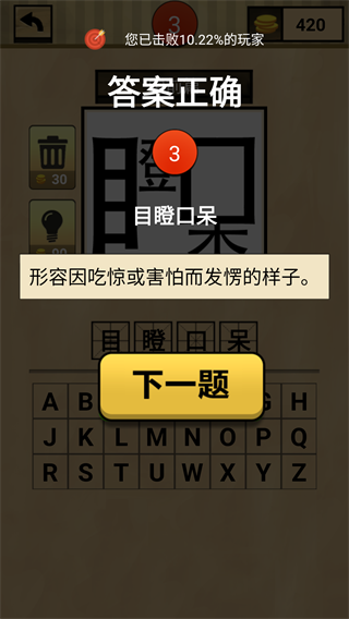 3、整体难度循序渐进且颇具挑战性,每个关卡都搭配了独特的答题思路和解题逻辑,侧重成语积累量,考验灵活应变能力,不同关卡呈现出截然不同的游戏体验,充分激发你的答题兴趣。