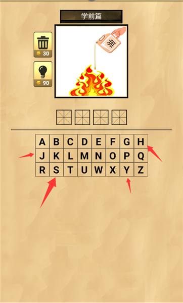 4、这张图是火上浇油成语,输入文字第一个大写字母就可以了。