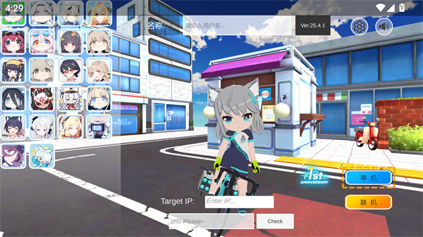1、在本站下载并安装好碧蓝档案卡丁车,打开游戏来到角色选择界面,选择自己喜欢的角色并决定单机游玩还是联机游玩。