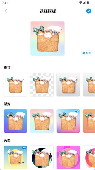 2、从相册中挑选需要处理的图片,选中后应用会自动启动抠图程序;抠图完成后,按需选择预设背景,点击右上角按钮进入下一步编辑。