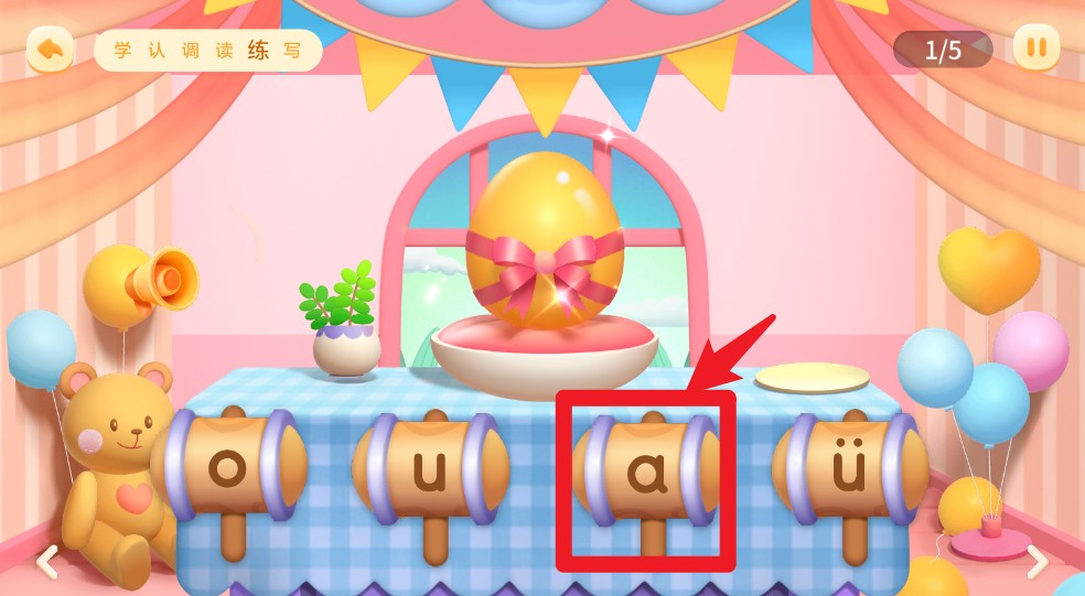 2、选择拼音练习关卡后,通过图案识别和发音匹配进行互动闯关,提升识记能力。