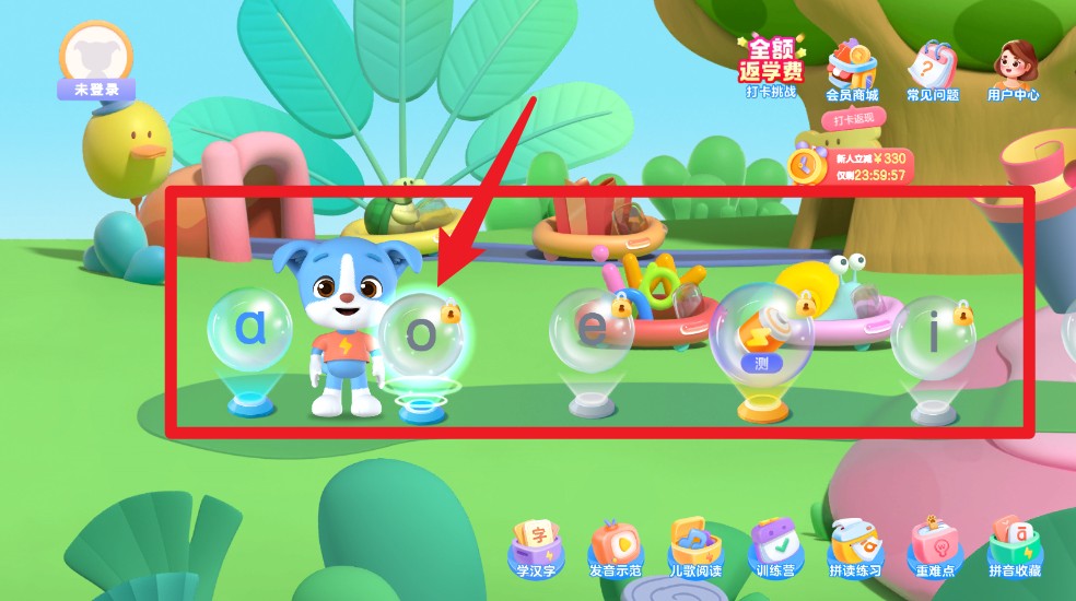5、在练习大厅中,点击气泡字母即可进入该拼音的专项练习关卡。