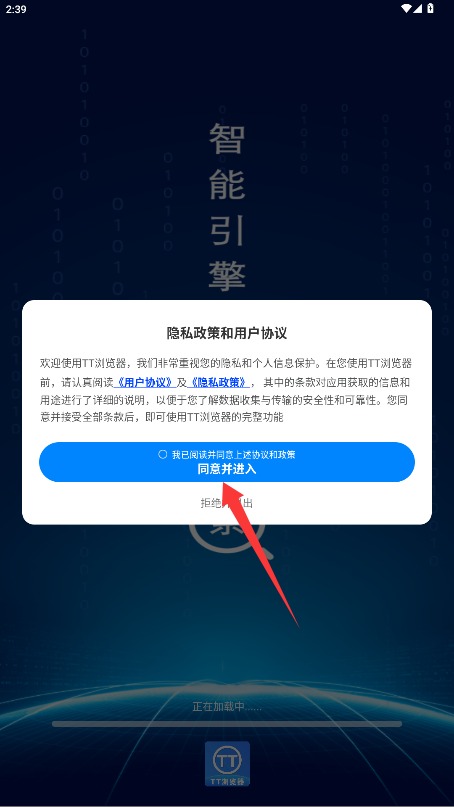 1、初次使用需阅读用户服务协议与隐私政策,确认后点击同意并进入选项进入应用。