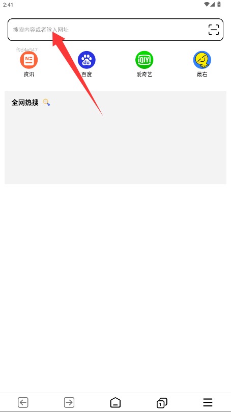 3、进入主页后可在搜索栏输入关键词或网址进行内容搜索与网页的访问。