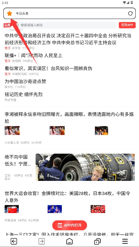 4、浏览网页时点击左上角收藏图标,即可将当前网址保存至收藏夹方便下次访问。