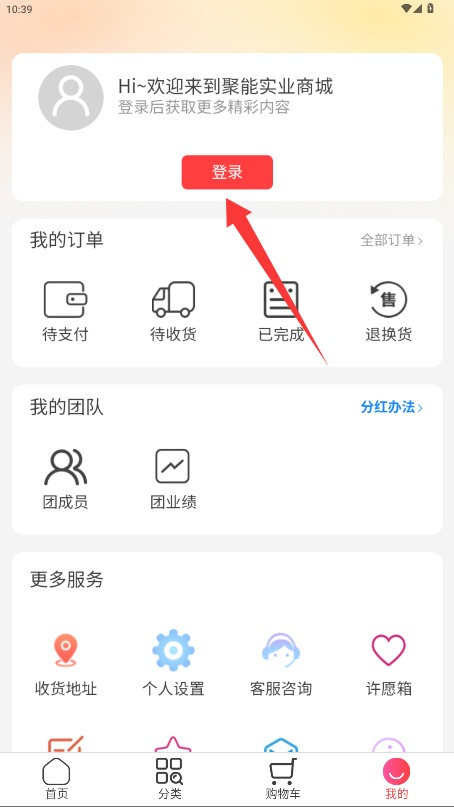 1、首次使用聚能实业商城需进入个人中心,点击登录按钮跳转至账号验证页面。