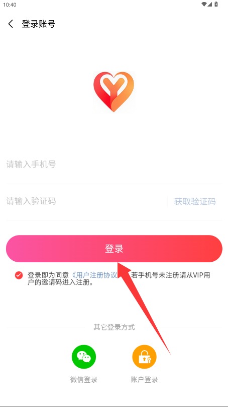 2、在登录页面输入手机号和验证码,勾选同意相关条款后点击登录进入应用。