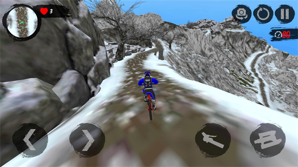 2、操控骑手竞速:采用第一人称视角设计,通过操控方向键、加速键及刹车键,控制骑手在赛道上展开竞速,灵活规避各类障碍物。