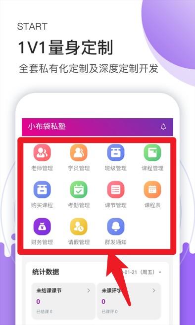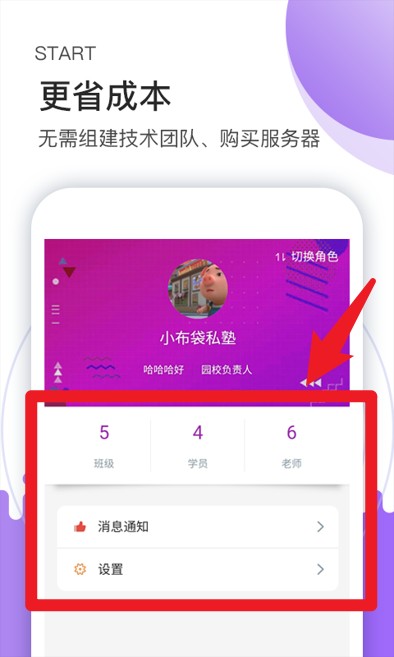 4、主界面清楚展示班级、学员和老师数量,便于负责人快速了解整体运营状况。