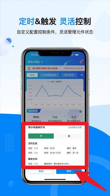 3、可自定义控制条件,设置定时启停与触发规则,灵活管理设备运行。