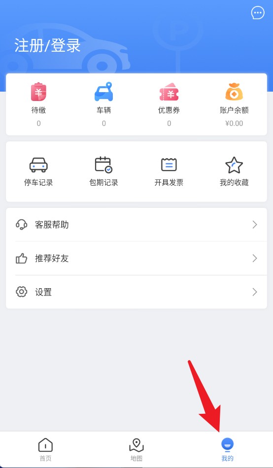 3、我的页面汇总个人信息及服务功能,包括停车缴费、发票管理、客服帮助等多项便捷服务入口。