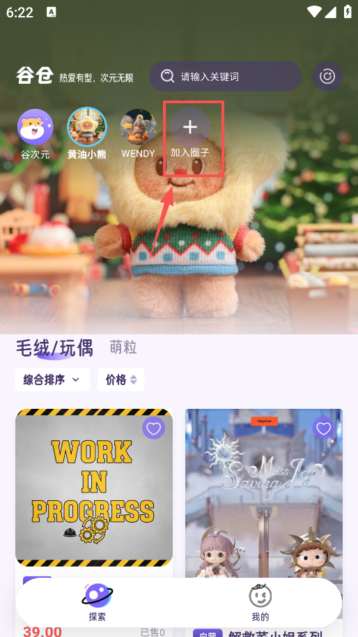 1、打开谷仓 App,在页面中找到 “加入圈子” 按钮并点击,开启社交探索之旅。