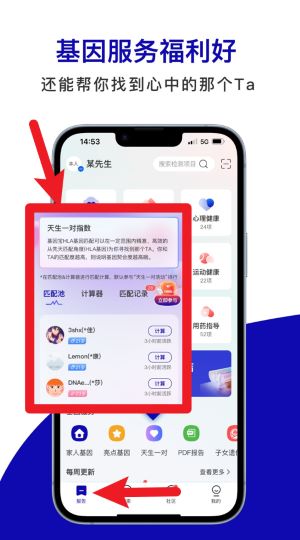 4、在天生一对模块中,通过基因匹配算法帮你找到适合的另一半,点击计算即可查看双方的匹配指数及推荐结果。