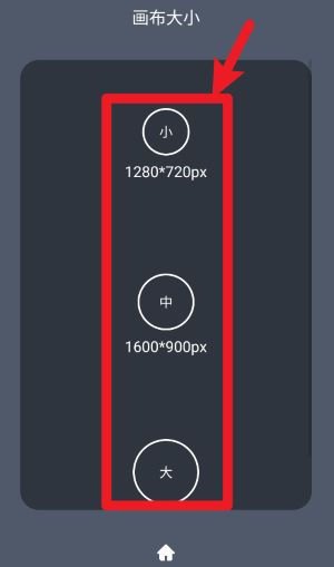 3、在选择画布大小时,可从小、中、大三个选项中挑选合适的像素尺寸以便后续图片制作。