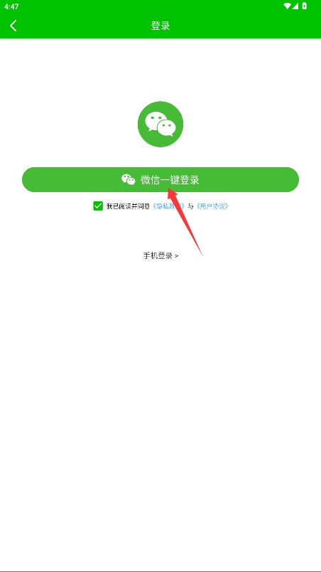 1、通过微信快捷登录或手机验证码完成账号认证,勾选同意用户协议后进入功能主界面。