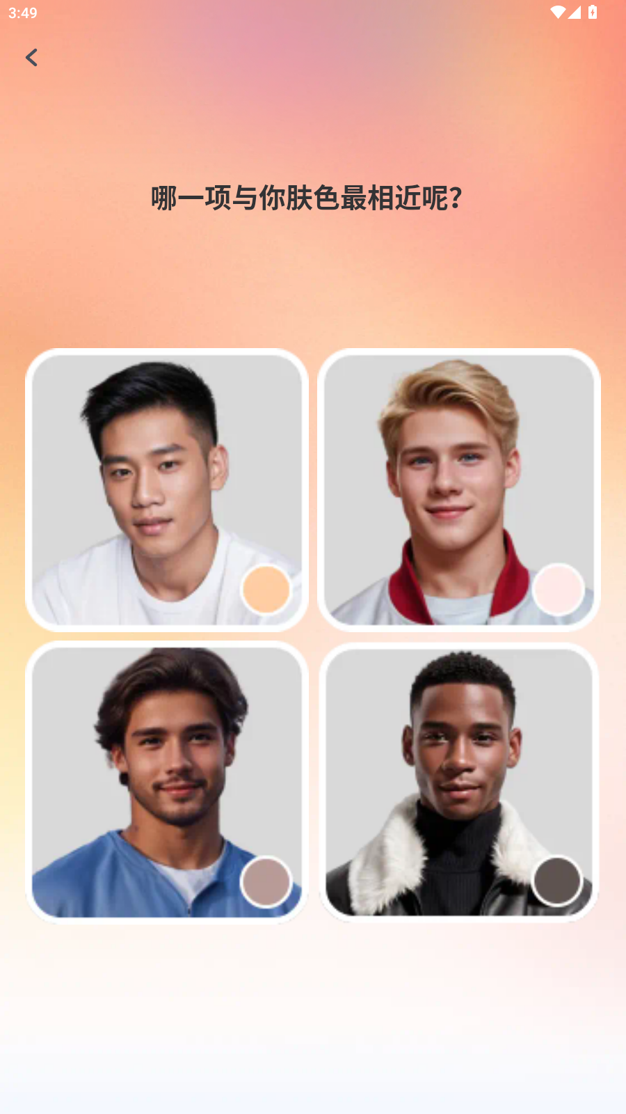 3、性别选择后,挑选面容特征,包括肤色、眼睛、鼻子、下巴形态等。