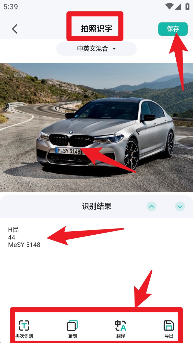 5、多语种转换:支持中英文混合识别,满足办公学习场景的文本提取需求。