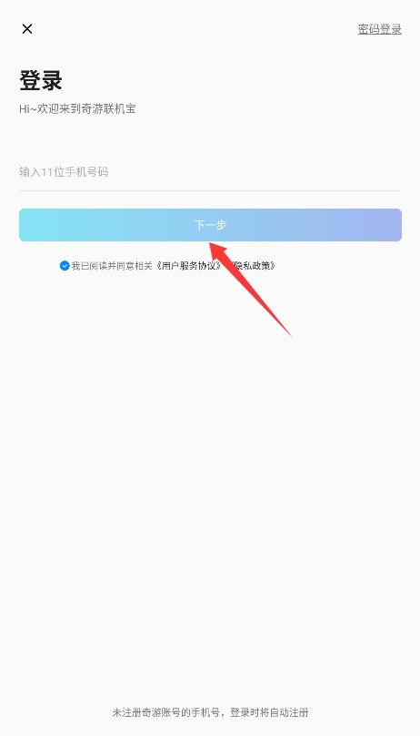2、在登录页面勾选同意用户协议,填写手机号获取验证码,输入后完成账号登录。